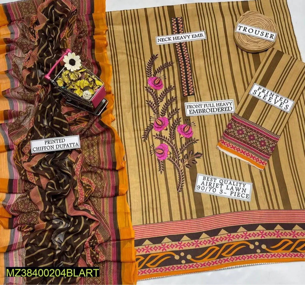 3 pc Embroided Lawn Unstiched Suit