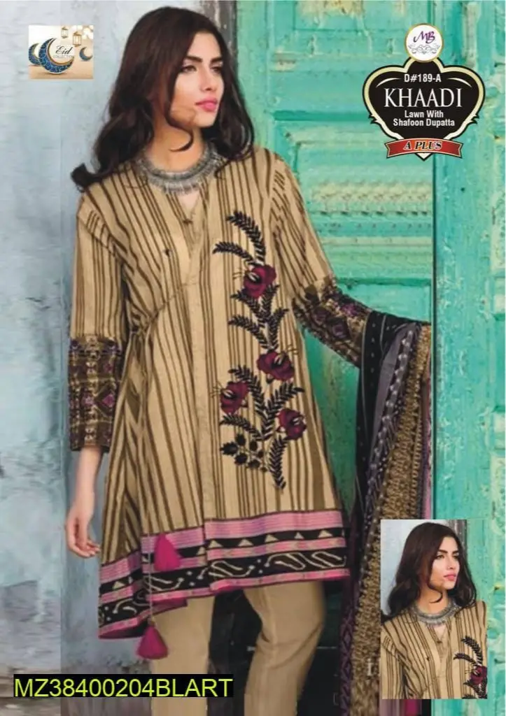 3 pc Lawn Unstiched Suit | Dukan.pk